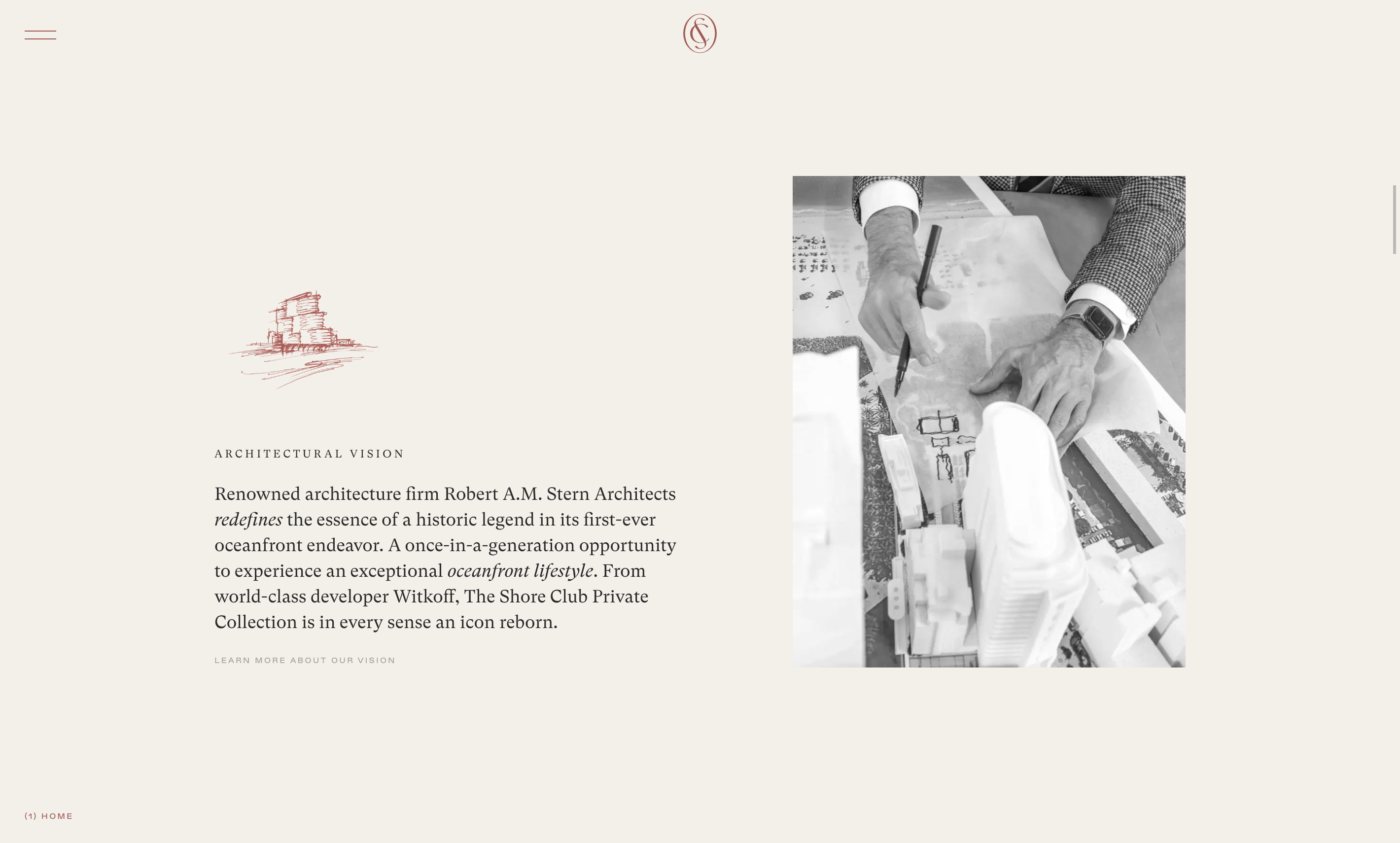 Website design and development for The Shore Club Private Collection, a suite of 49 private homes overlooking Miami Beach designed by Robert A.M. Stern Architects, developed by Witkoff, and marketed exclusively by Douglas Elliman
