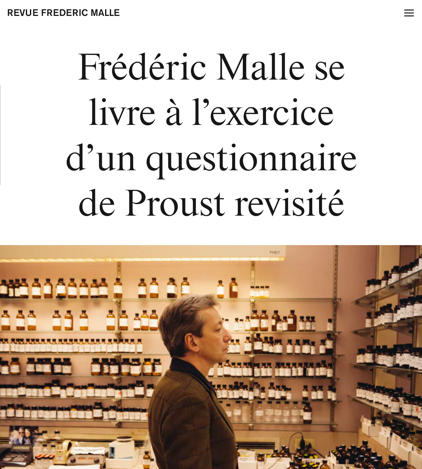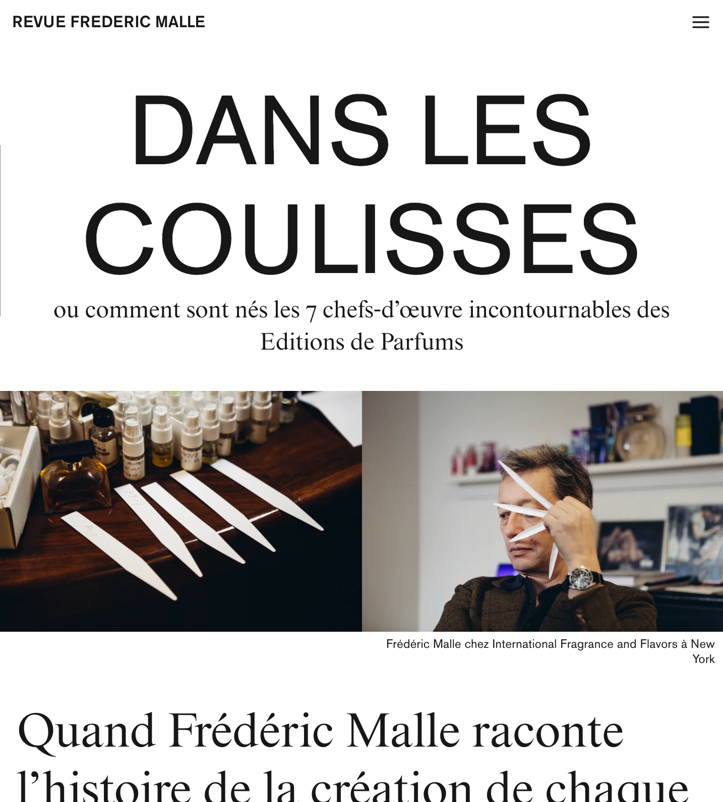 Design and development of Revue Frédéric Malle, a multilingual digital editorial by Editions de Parfums Frédéric Malle
